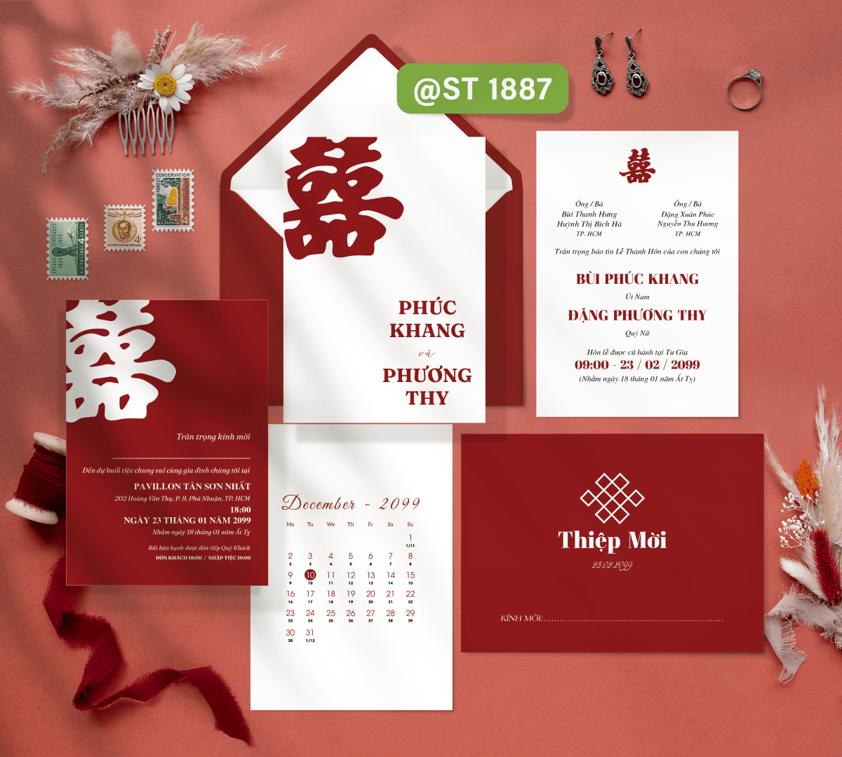 Thông tin 2 họ bao gồm: [1] Ông / bà chủ hôn, [2] địa chỉ, [3] tên chú rễ, cô dâu, [4] vai thứ của chú rễ, cô dâu
